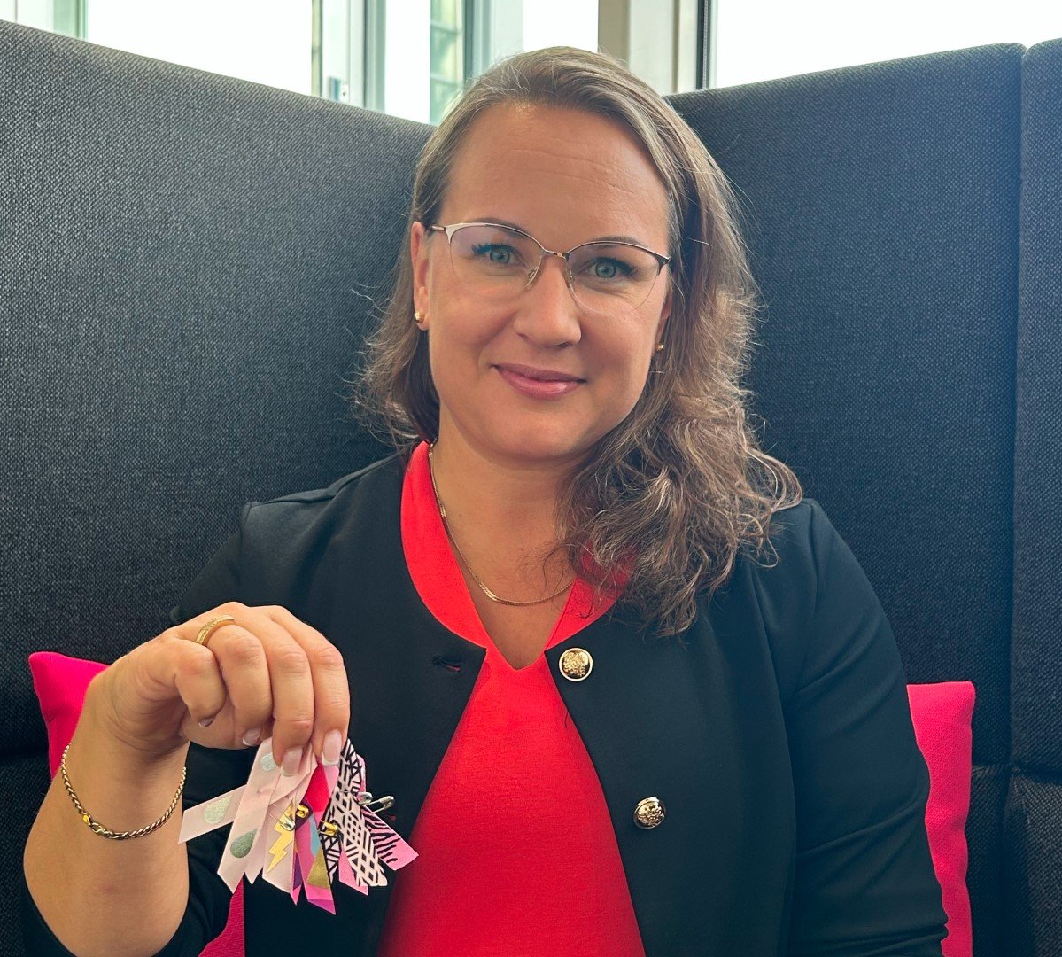 Tämän hankinnan kautta tuimme myös alueellista vaikuttavuutta. Roosa nauhat hankittiin paikallisesti Lahden, Hämeenlinnan ja Riihimäen paikallisosastoilta, mikä tarkoittaa, että panostuksemme kohdistui suoraan oman alueemme toimijoihin. Tämä on osa vastuullisuustyötämme – konkreettisia tekoja, jotka tukevat sekä yhteiskuntaa että paikallisyhteisöä.