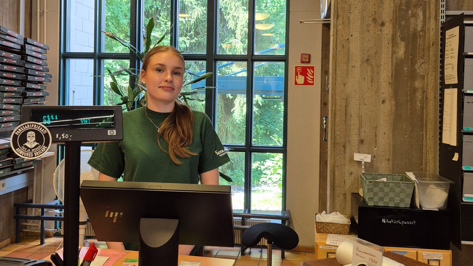 Minea Sainio kesäduunissaan Hämeenlinnan sotilaskotiyhdistyksellä.