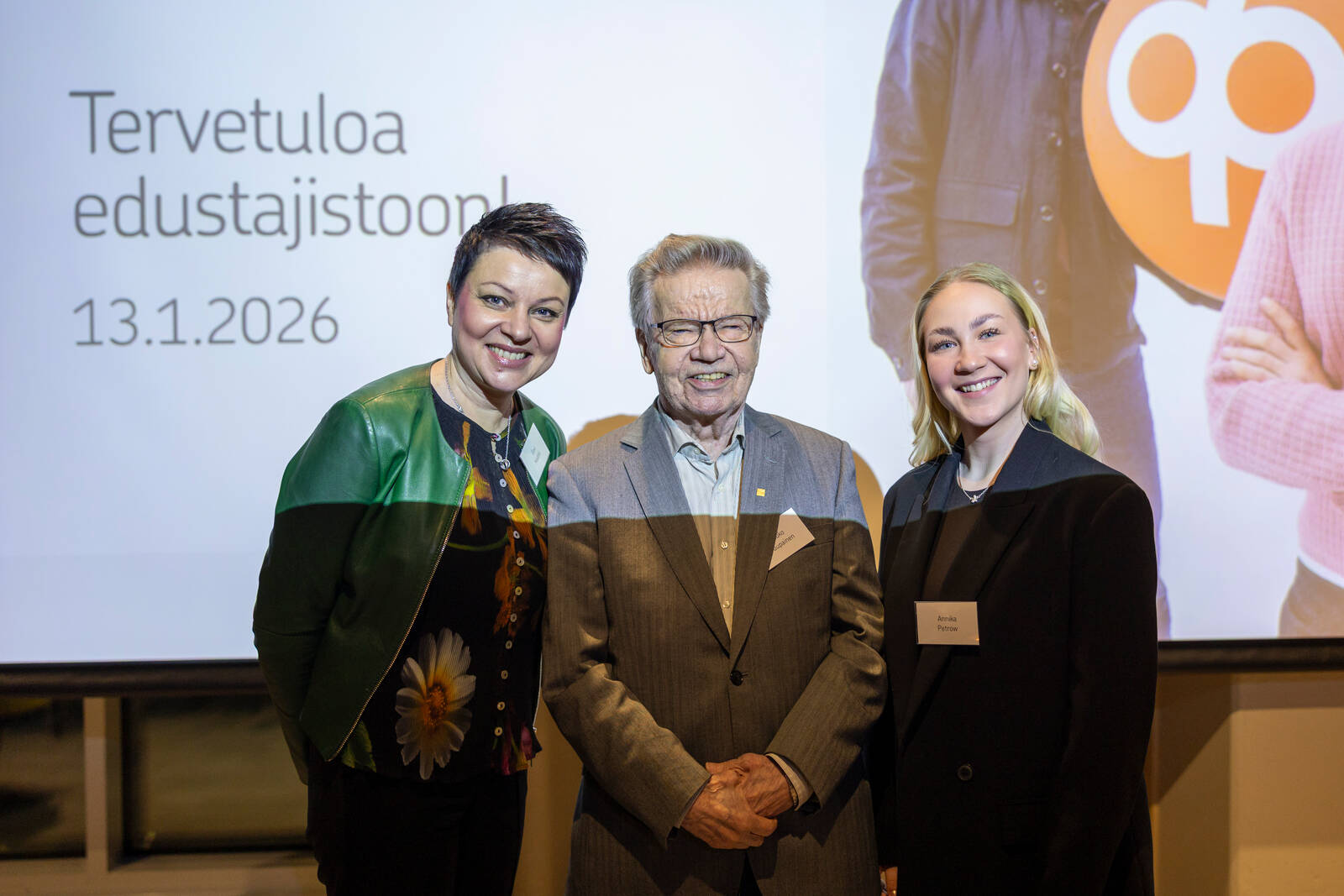 Perehdytystilaisuudessa Eevi ja Katri kertoivat uuden edustajiston jäsenille muun muassa Keski-Suomen Osuuspankin historiasta, strategiasta ja muuttuvasta toimintaympäristöstä. Katrin mukaan eniten toimintaympäristöön vaikuttavat tällä hetkellä murroksessa olevat liiketoiminnan arvoketjut, geopolitiikan ja globaalin talouden epävarmuus sekä polarisaatio ja väestön demografinen muutos.