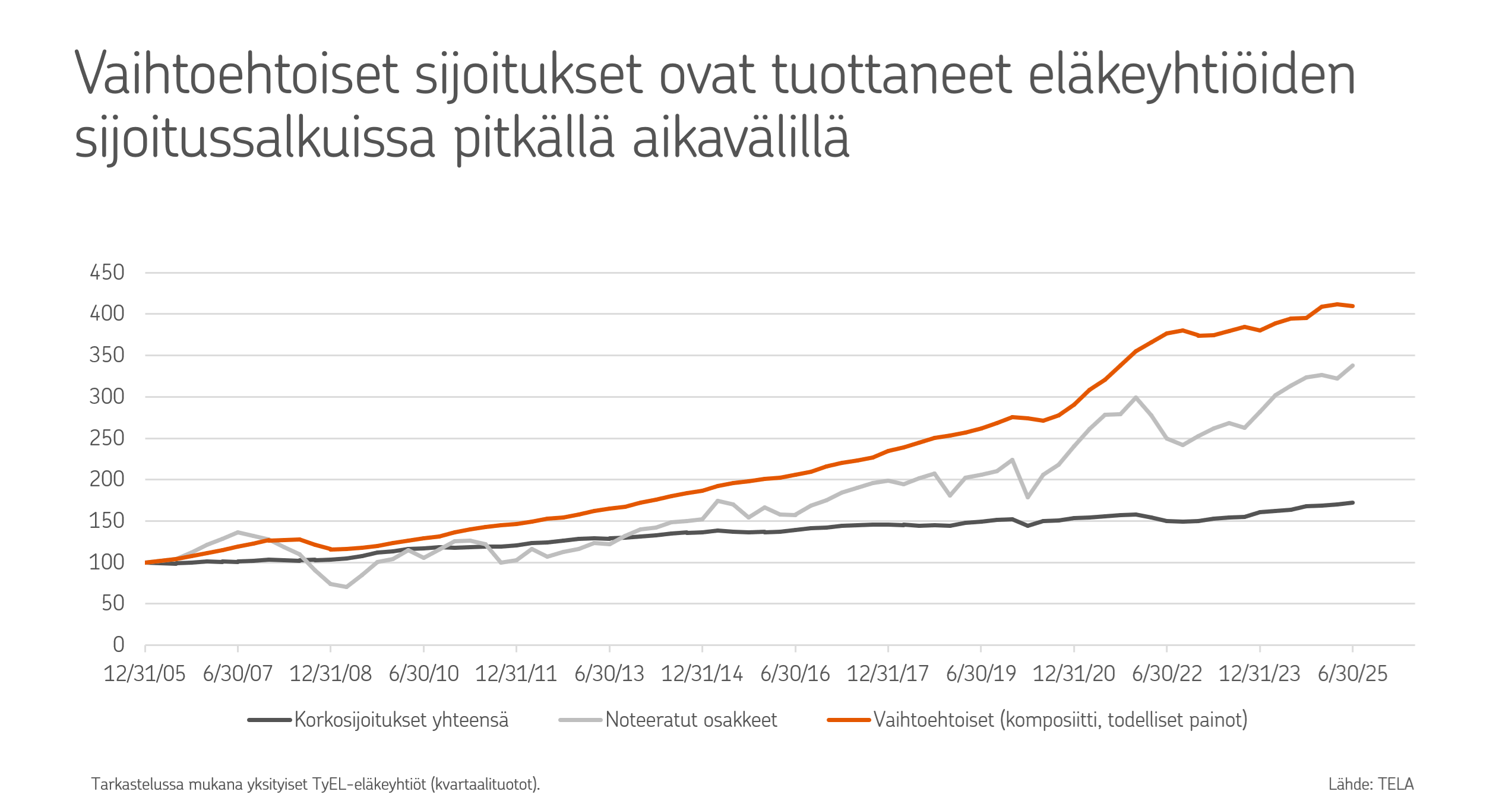 Tiesitkö, että suurten eläkeyhtiöiden sijoituksista jo noin 40 prosenttia kohdistuu vaihtoehtoisiin sijoituksiin?