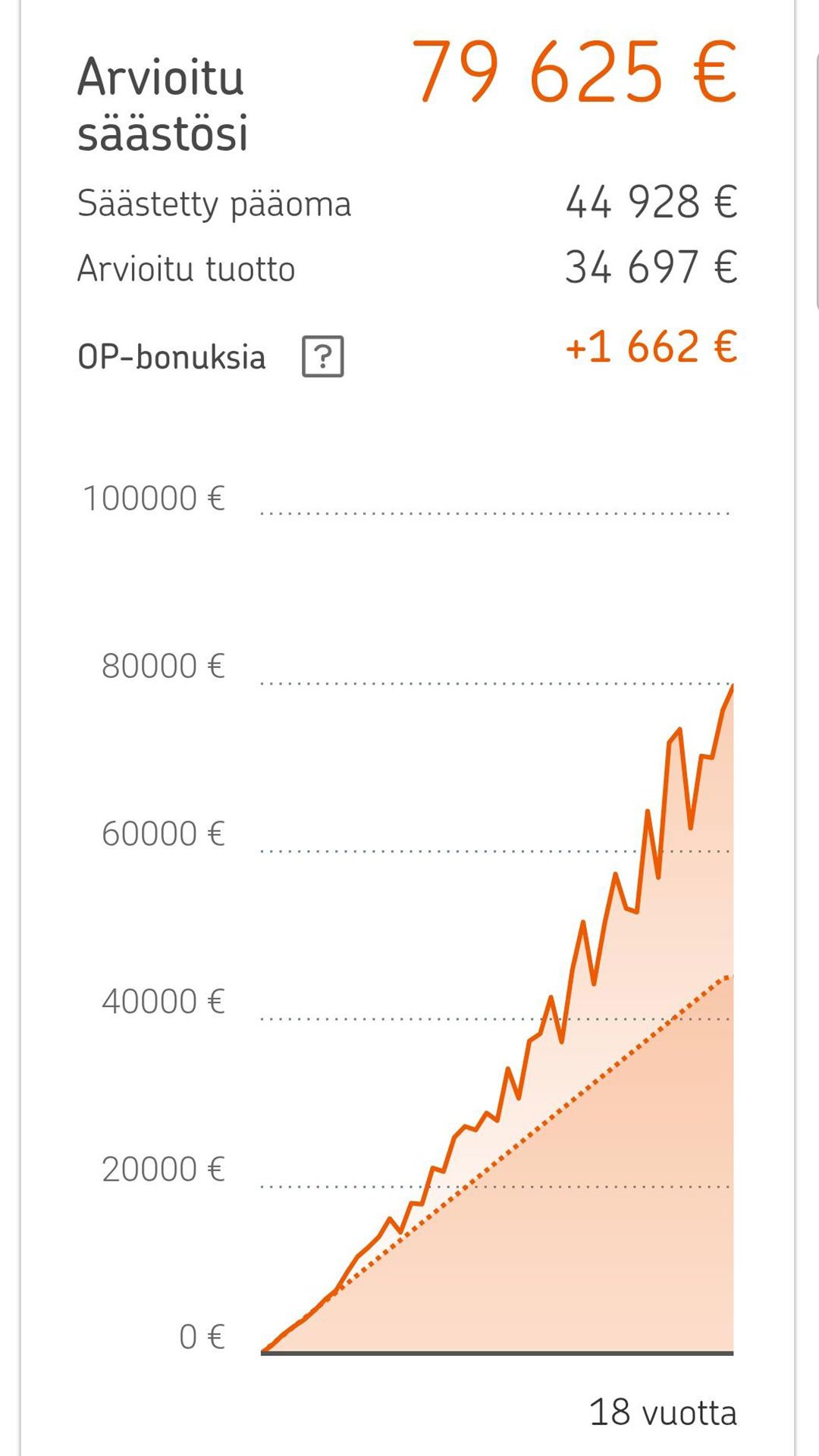 Tämä on mainos. OP Ensisijoituksen antaa ja sijoittamisen palvelut tarjoaa osuuspankki. Rahastoa hallinnoi OP-Rahastoyhtiö Oy. OP-Maailma Indeksi -sijoitusrahasto sijoittaa varansa laajasti kansainvälisille osakemarkkinoille. OP:n sijoitusrahastojen salkunhoidosta vastaa OP Pohjolan rahastojen rahastoesitteessä yksilöity salkunhoitoyhteisö. Sijoittamiseen liittyy aina riskejä. Sijoitusten arvo voi nousta ja laskea, ja sijoittaja voi menettää sijoittamansa pääoman osittain tai kokonaan. Esimerkin vuotuinen tuotto-odotus on asetettu 6 prosenttiin, koska historiallisesti osakemarkkinat kasvavat keskimäärin 6 prosenttia vuosittain. Jos sijoitusrahastoa markkinoidaan ulkomailla, voi OP-Rahastoyhtiö Oy päättää lopettaa tällaisen markkinoinnin.